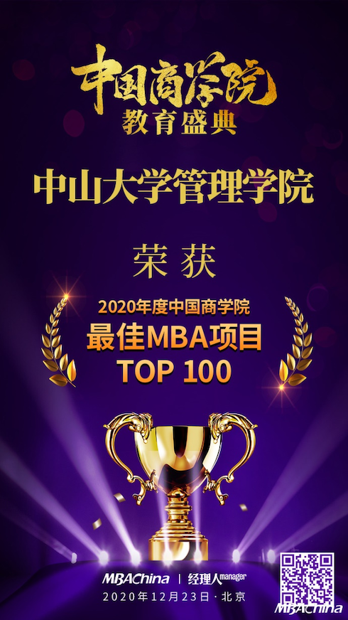 喜讯 |我院荣获“2020年度中国商学院最佳MBA项目TOP 100”第五名