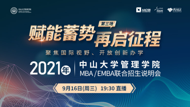 9月16日晚,赋能蓄势,再启征程——永利集团3044官网402永利集团官网MBA/EMBA线上联合招生说明会(第三场)顺利召开,我院MBA教育中心主任姚海林、EMBA教育中心副主任吴映玉、MBA教育中心招生主管张晓瑜、2019级FIMBA 在读学生张燕雯、2019级PTMBA在读学生冉伟昊、2016级PTMBA虞晓莹校友作为分享嘉宾出席了本次说明会。我院分别在6月20日,7月22日举行了第一场、第二场MBA/EMBA联合招生说明会,据统计,这三场说明会分别累计观看人数均达上万人次,收到了良好反响。