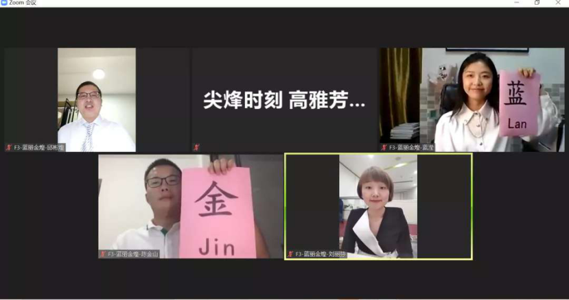 在决赛中,我院“蓝丽金煌”队颇具亮点,创新进取。团队介绍环节,队伍每人用了一张纸介绍自己的名字及与队名的渊源。在决赛商业演练中,队员们观点新颖,获得赞助商评委青睐,拿下了“最受欢迎奖”。