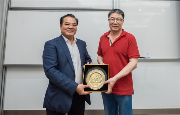 讲座尾声,我院谭劲松教授进行总结发言并向庄总颁发纪念品,合影留念。谭教授表示,尽管当前中国经济存在诸多矛盾之处,但是反省与思考矛盾的目的是为了保持经济与社会的前进发展,希望大家保持正能量,迎难而上。