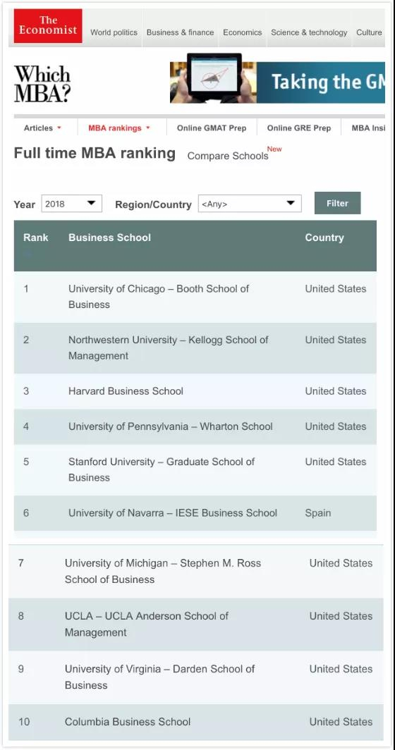 【2018全球MBA项目排名情况】