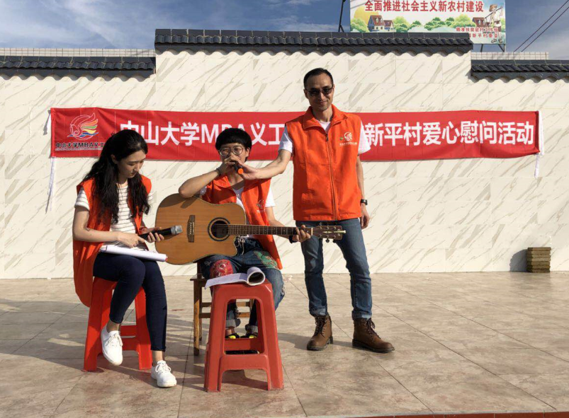 最后,在村文化广场进行了本次活动的捐赠交接仪式。义工团除了向村民和小朋友们赠送了风扇、椅子、洗衣粉、书籍、台灯等物资,同时向村委赠送了洗碗机和碗筷。新坪村村支书陈桂财与永利集团3044官网402永利集团官网MBA联合会主席李婵在村文化广场进行了捐赠品交接。随后,义工团的小伙伴17级同学罗俊杰、18级拟录取新生王艳为村民们弹奏了吉他,文化下乡,让村民们感受快乐与温暖。