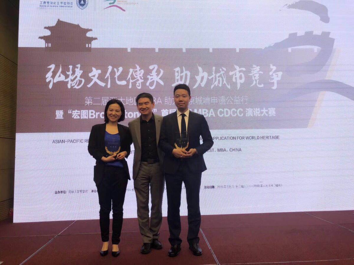 3月31日—4月1日,由南京大学商学院及其MBA中心主办,宏图Brookstone冠名支持的“宏图Brookstone 杯”第二届亚太地区 MBA 助力南京城墙申遗公益行暨首届中国MBA CDCC 演说大赛总决赛在南京隆重举行。我院第十一届MBA联合会主席廖立新、副主席李婵,演说大赛参赛同学罗俊杰、王涯瑄受邀参加了此次活动。罗俊杰、王涯瑄在演说比赛中双双获得首届中国MBA CDCC演说大赛“风采奖”。