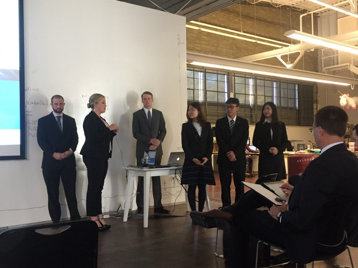 11月10日,中美MBA咨询小组在Exaptive公司总部进行最后的项目成果展示。Exaptive公司创始人兼CEO Dave King,联合创始人兼CCO Michael Perez、联合创始人兼COO Clive Higgins(视频参与)等多名高层领导及俄克拉荷马州立大学的国际交流项目负责人Prof. Johnson都参与了会议。四个小组以各自不同视角提出了建设性的方案,并针对Exaptive公司高层的疑问进行了详细的解答。Exaptive公司对各组的项目成果高度赞扬,表示我们对中美客户的实地调查和分析,为他们未来的发展提出了不同视角的启发。在愉快的氛围下本次咨询项目圆满落幕。