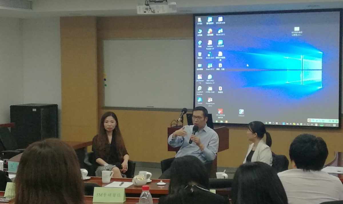 随后,分享交流的环节将此次分享会推向了高潮。蔡妮娜老师就学生职业规划过程中关注的焦点问题与王季丁副总裁、邓佳轶总监进行了访谈交流。王总、邓总分别结合自身职业发展经历、管理经验等,带领大家对职业发展的过程进行全方位的解析,并给予同学们在职业发展、职业转型方面的建议:一是深入的自我剖析,明确职业方向;二是谨慎转型,从行业、公司发展、公司文化等多维度进行选择;三是不断学习积累,提升自身价值贡献;四是在职业转型中,保持空杯心态,有舍有得,成就更好的自己。现场同学还分别向两位嘉宾进行提问,提出了自身职业发展中遇到的困惑,嘉宾给予了专业细致的指导交流。