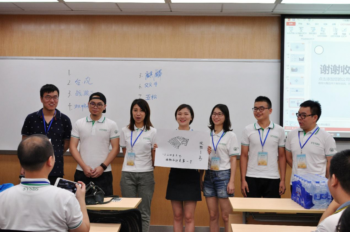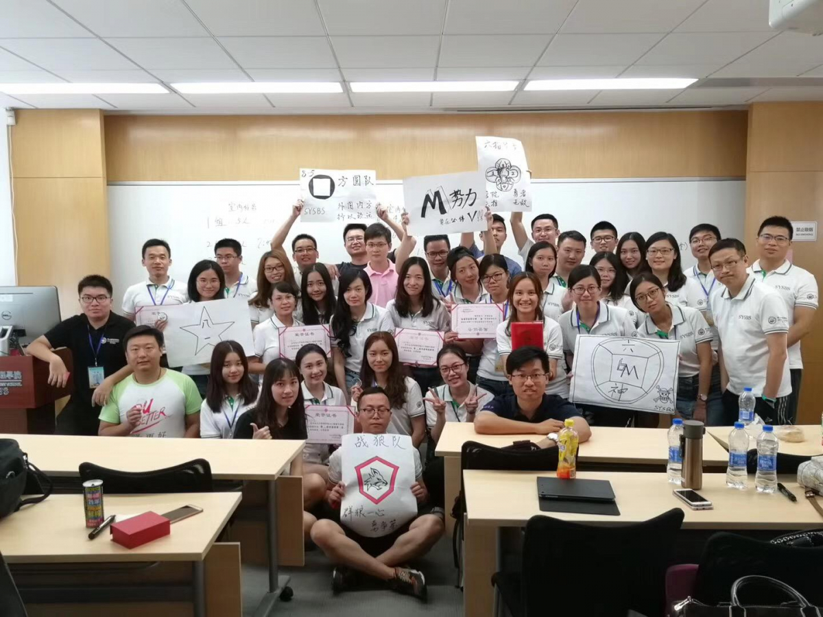 上午九点,17级4M新生穿着学院特制的白色T恤衫走进指定的教室。永利集团3044官网MBA联合会的师兄师姐为新生讲解本次拓展活动的内容和相关规则。拓展活动内容共分为室内和室外两个部分。室内主要是团队建设部分,包括绘制自己团队的队旗、提出自己团队的口号,还有既富有挑战性又友爱的热身小游戏;室外部分重点是寻找指定目标物,诸如校训、孙中山铜像等一些中大特色的标志物,还需拍摄自己团队的舞蹈视频,十分有趣搞怪。待所有任务结束后各小组回到教室,将自己的活动成果汇集在一起,做成ppt,并进行汇报分享。