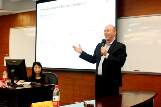 著名的新西兰嘉宾John Cochrane 用图文并茂的方式给大家介绍了新西兰的历史文化,经济状况以及新西兰与中国贸易往来的变化趋势等。精准的数据引用、精彩幽默的表述以及动感的视频录影展示赢得了观众的阵阵掌声。
