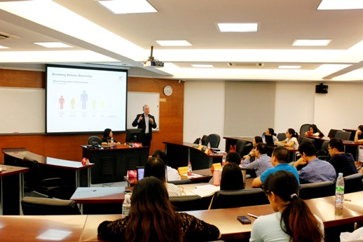 紧接着,MBA教育中心副主任姚海林老师结合自己在新西兰的经历,和大家分享了自己眼中的新西兰以及新西兰文化与中国文化的差异,并用生动的案例展现了新西兰人民的热情与淳朴。
