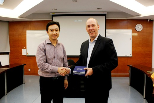 MBA教育中心主任王远怀老师向新西兰嘉宾John Cochrane赠送礼品。