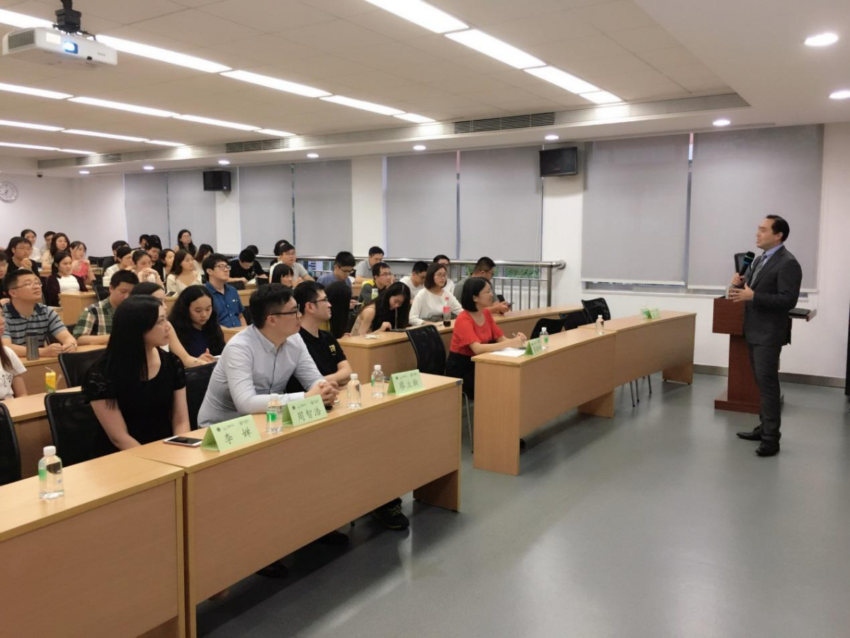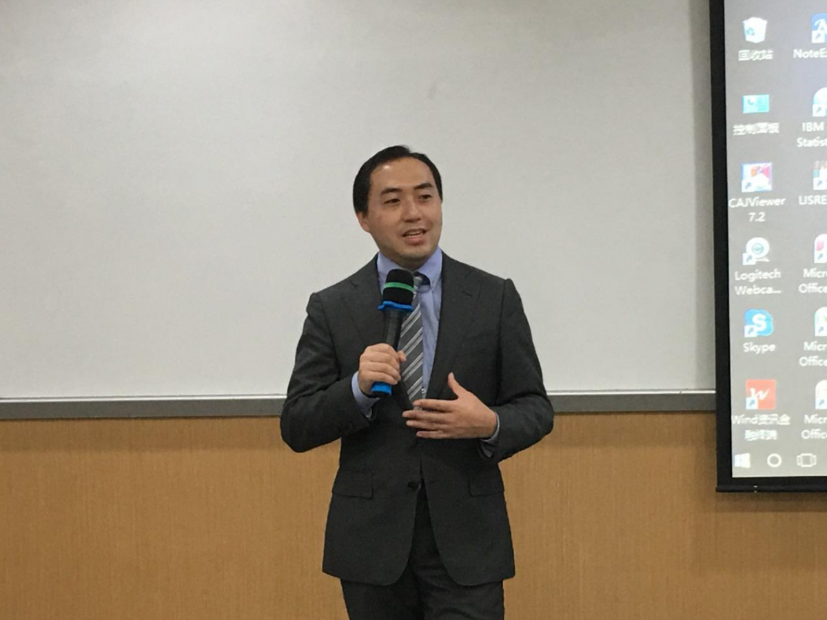 紧接着,本场讲座的重量级嘉宾万科战略投资并购总监翁杰先生在同学们期待的目光中开始了分享。翁杰先生是美国耶鲁大学经济学学士(全额奖学金),哈佛商学院MBA,拥有十年全球金融投资经验。翁杰先生通过与同学们的互动提问,让大家理解如何更好地读MBA,他用自身的学习与工作经历告诉大家,通过MBA的学习,不仅仅只是获得经济、管理类的知识,还要培养独立思考和分析能力,以及搭建起教授、同学、校友等人脉网络。