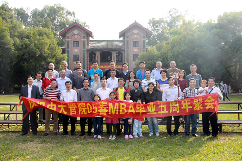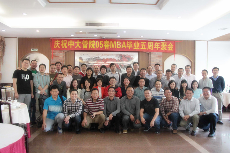 校友们回顾毕业五年来的工作、事业发展变化,大家都有感于中大管院为我们搭建MBA学习交流平台,不仅系统学习到企业管理知识,更是收获了师生情谊、人生旅途中的良师益友,助力我们今后职业发展更加精彩。正如中大管院的“打造商界黄埔军校”定位,05春MBA校友相当部份已转型升级发展,践行MBA教育的理念与宗旨:如CK全球鞋业事业部总经理甘兵、百花香料副总钟炼军、越秀集团副总林昭远、南方包装总经理马军、碧桂园区域工程技术总监冯胜强等校友;已在创业路上的有互联网金融的赖金茂、服装联盟的李茵、移动互联网咨询的张毅、影视院线的袁东毅、妇婴用品的陈远添、网络医药营销的陈霖军、高端幕墙门窗的黄辉、环保产业的蒋晓辉、委托经营管理的王卫中、建材产业的黄俊辉等校友。此外,北大纵横合伙人吴章通校友正在搭建广州后MBA学习平台,希望为已毕业的MBA、EMBA校友们提供聚焦创业与事业发展合作的学习深造机会。