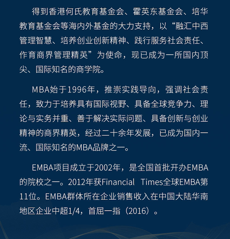永利集团3044官网402永利集团官网成立于1985年,作为国内最早成立的专门从事工商管理教育和研究的学院,它以敏锐的眼光、开阔的视野率先在南中国弘扬管理之道。自成立以来,以“融汇中西管理智慧、培养创业创新精神、践行服务社会责任、作育商界管理精英”为己任,以“打造中国商界黄埔军校”为愿景。