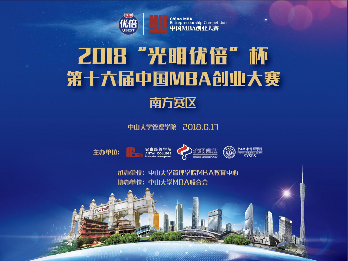 报名|2018“光明优倍”杯第十六届中国MBA创业大赛(南方赛区) 决赛观赛通知